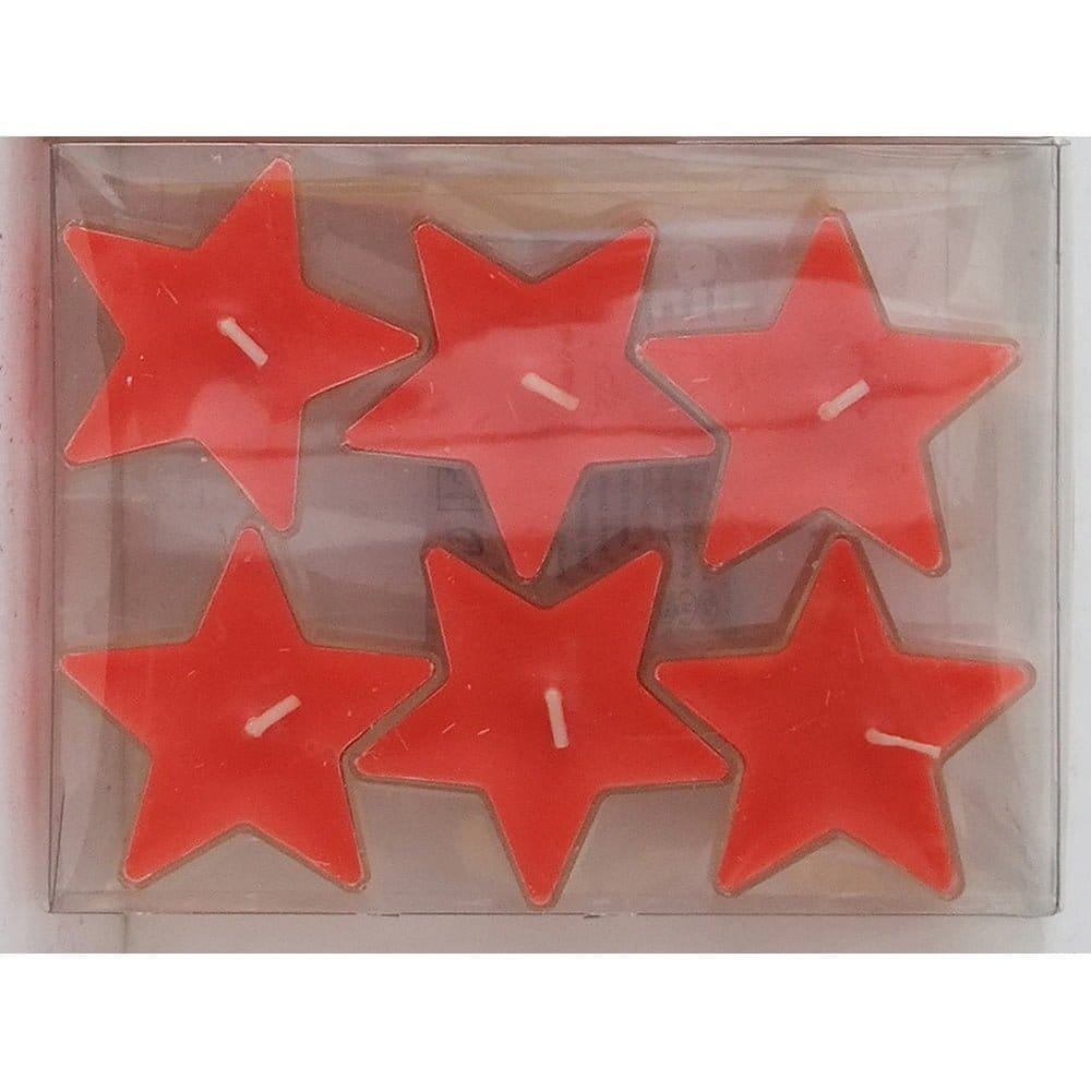 Stjärnformade ljus Röd Ø5,5 cm H2,6 cm 5 tim 6-pack