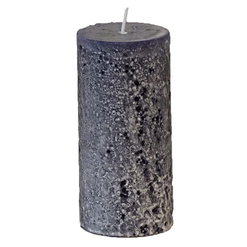 Blockljus med rustik isbergsliknande yta. Diameter 5,8 cm, höjd 12 cm. Brinntid ca 31 timmar.