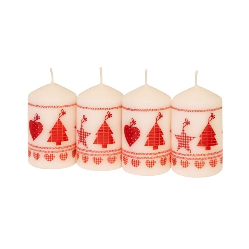 Blockljus med julmotiv Ø4,7 cm H7,5 cm 16 tim 4-pack