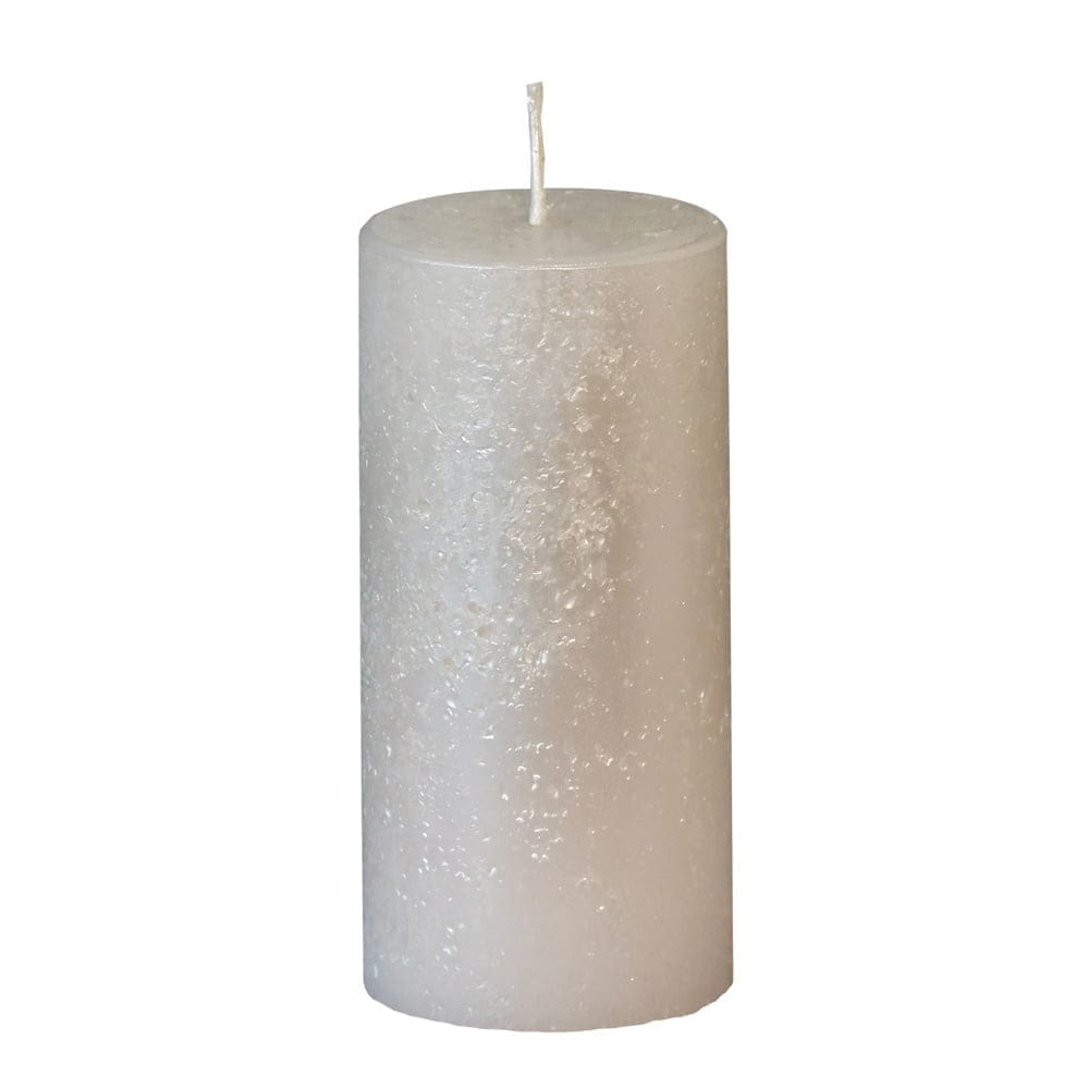Blockljus med rå metallicfärgad yta. Diameter 5,8 cm, höjd 12 cm. Brinntid ca 31 timmar.
