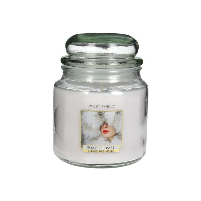 Doftljus i glasburk från Sweet Smell med doften Eskimo Kisses som består av pepparmint och vanilj. En avslappnande doft som får ditt hem att dofta rent och mysigt. Brinntid ca 90 timmar. Diameter 10 cm, höjd 13,5 cm. 426 gram.