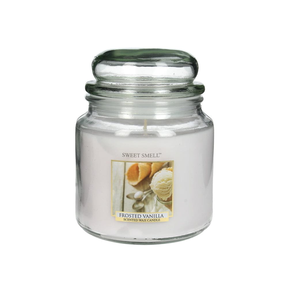 Doftljus i glasburk från Sweet Smell. Njut av en behaglig doft från len och krämig vaniljglass. Brinntid ca 90 timmar. Diameter 10 cm, höjd 13,5 cm. 426 gram.