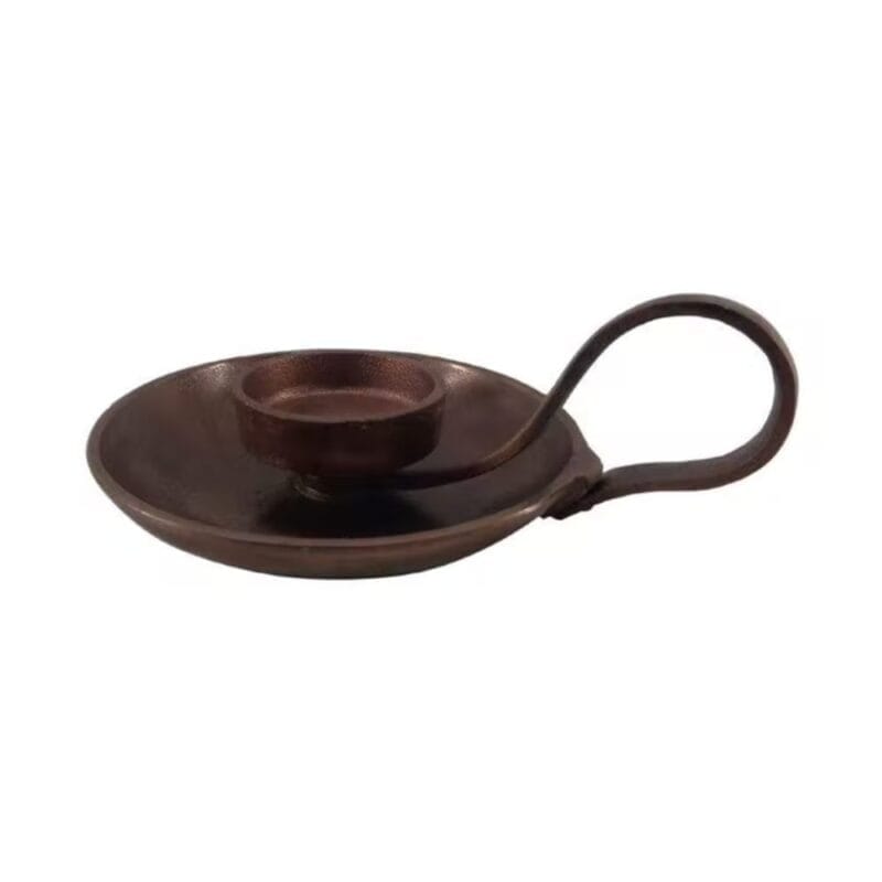 Kammarljusstake i metall för värmeljus. Mått 15x10x8 cm (lxdxh).