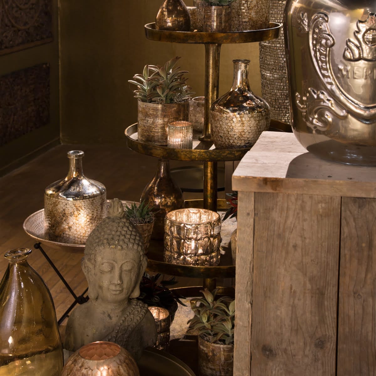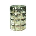 Ljuslykta i glas med dekor av metalltråd, där kombinationen glas och metall blir en spännande kontrast. Diameter 10 cm, höjd 15 cm.
