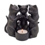 Söt ljuslykta med dekor av katter, tillverkad i polyresin. Mått 13x10x12 cm (bxdxh).