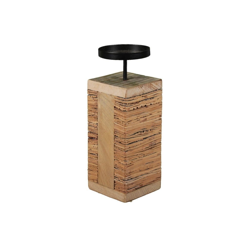 Ljusstake för blockljus i svart metall och trä 8,5×8,5×22,5 cm