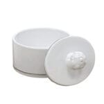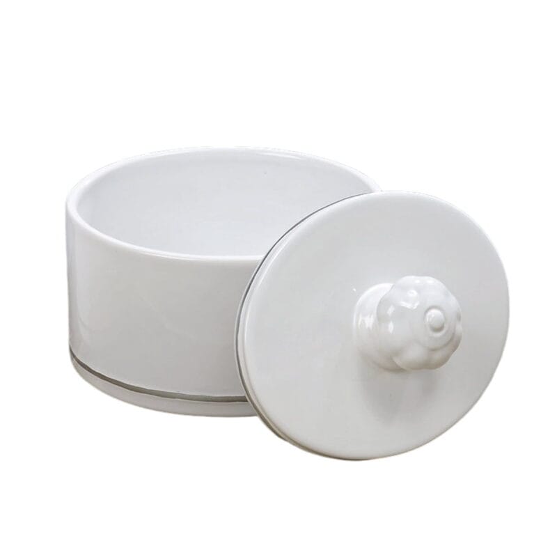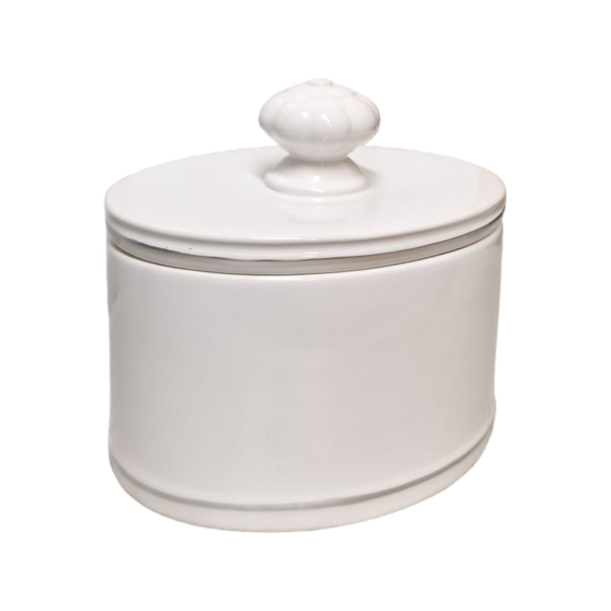 Oval ask i vitt porslin med silverdekor. Perfekt för lite fingodis. Mått 15,5×11,5×14 cm (lxbxh).