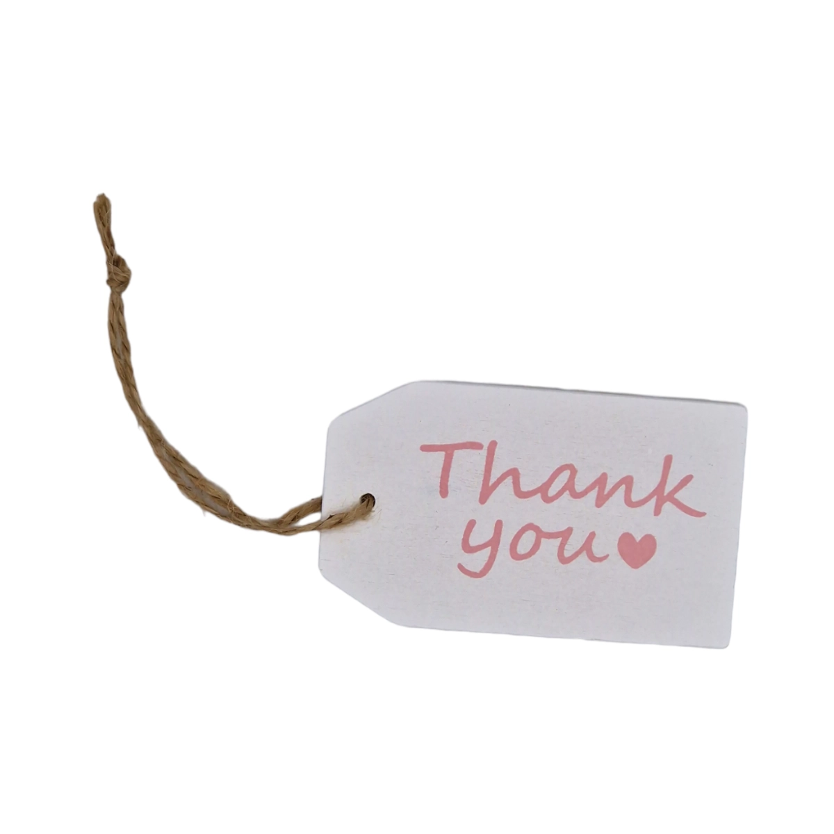 Liten skylt i trä med rosa text att fästa på tex en present eller en blomma.