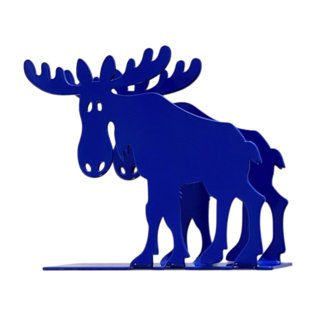 Servettställ i metall i form av en älg. Dekorativt på bordet och praktiskt med servetter nära till hands. Mått 11×9,5×3,5 cm (lxhxd).