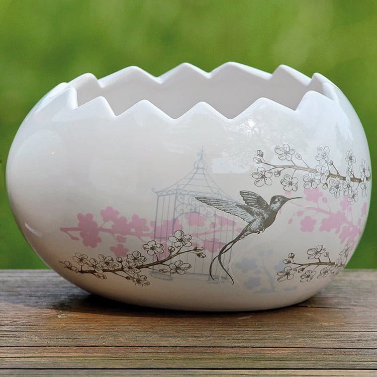 Ägg i vitt porslin med vårig dekor. Perfekt till exempelvis påskgodiset eller en påskblomma. Även fin som dekoration som den är utan något i. Mått 20x16x12,5 cm (lxbxh).