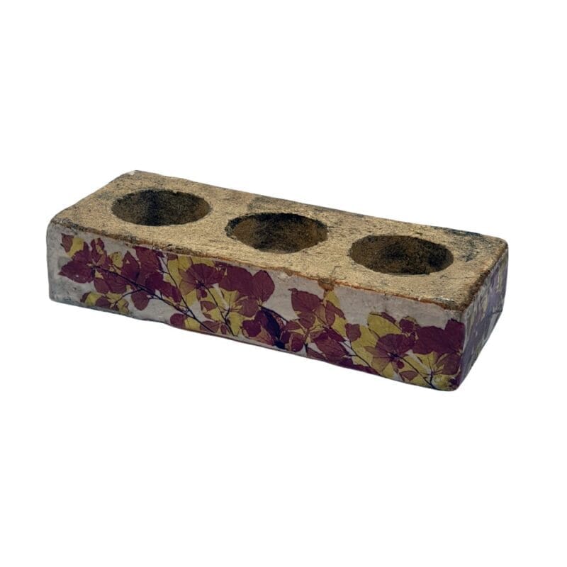 Hållare för värmeljus med dekor av vackra höstlöv. Tillverkad i betong och har måtten 20x8x4 cm (lxbxh).